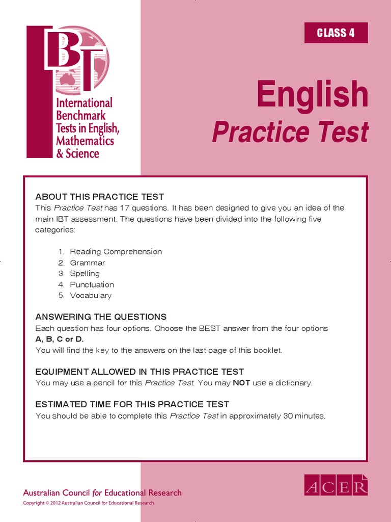 Ibt Sample Paper Grade 3 English Class 3 International Benchmark Tests In English Mathematics Science English Practice Test About This Practice Course Hero